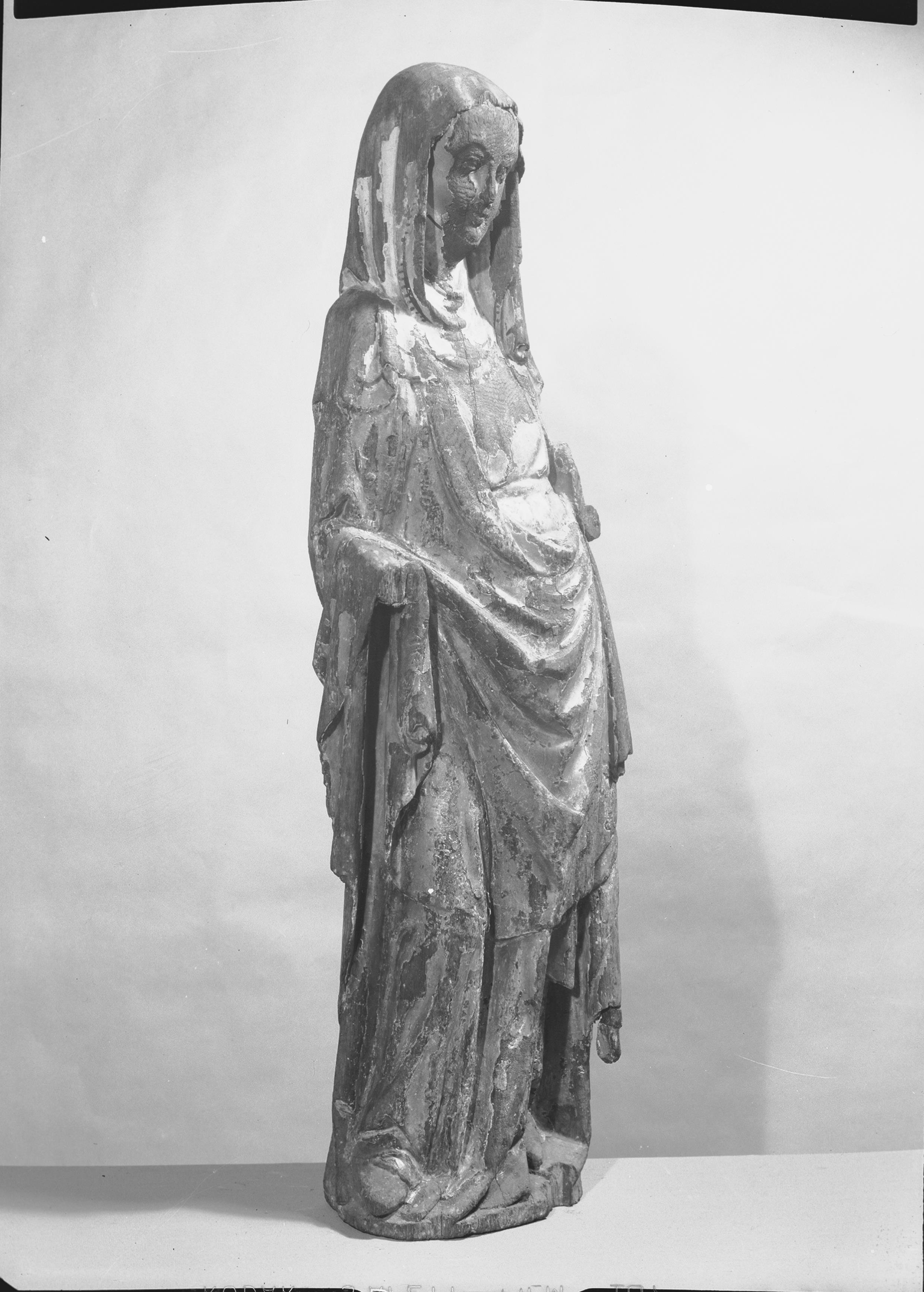 Skulptur, trä, kvinnligt helgon, 1300-talets förra hälft.
