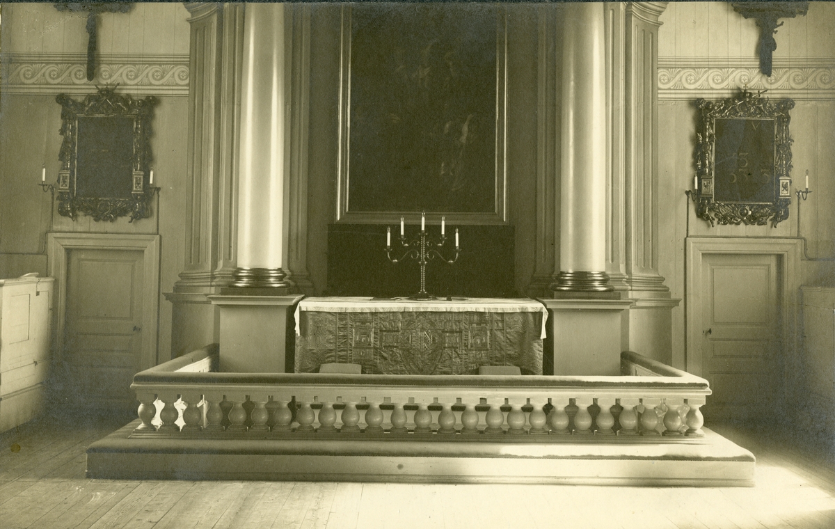 Amiralitetskyrkan i Karlskrona. Kyrkans kor med det nya antependiet 1912