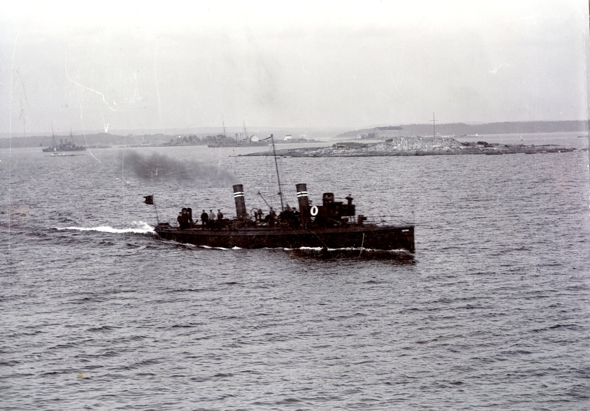 1:a klass torpedbåt. I förgrunden Hugin-klassen. I bakgrunden till vänster pansarbåt i Svea-klassen. till höger minkryssaren Jacob Bagge.