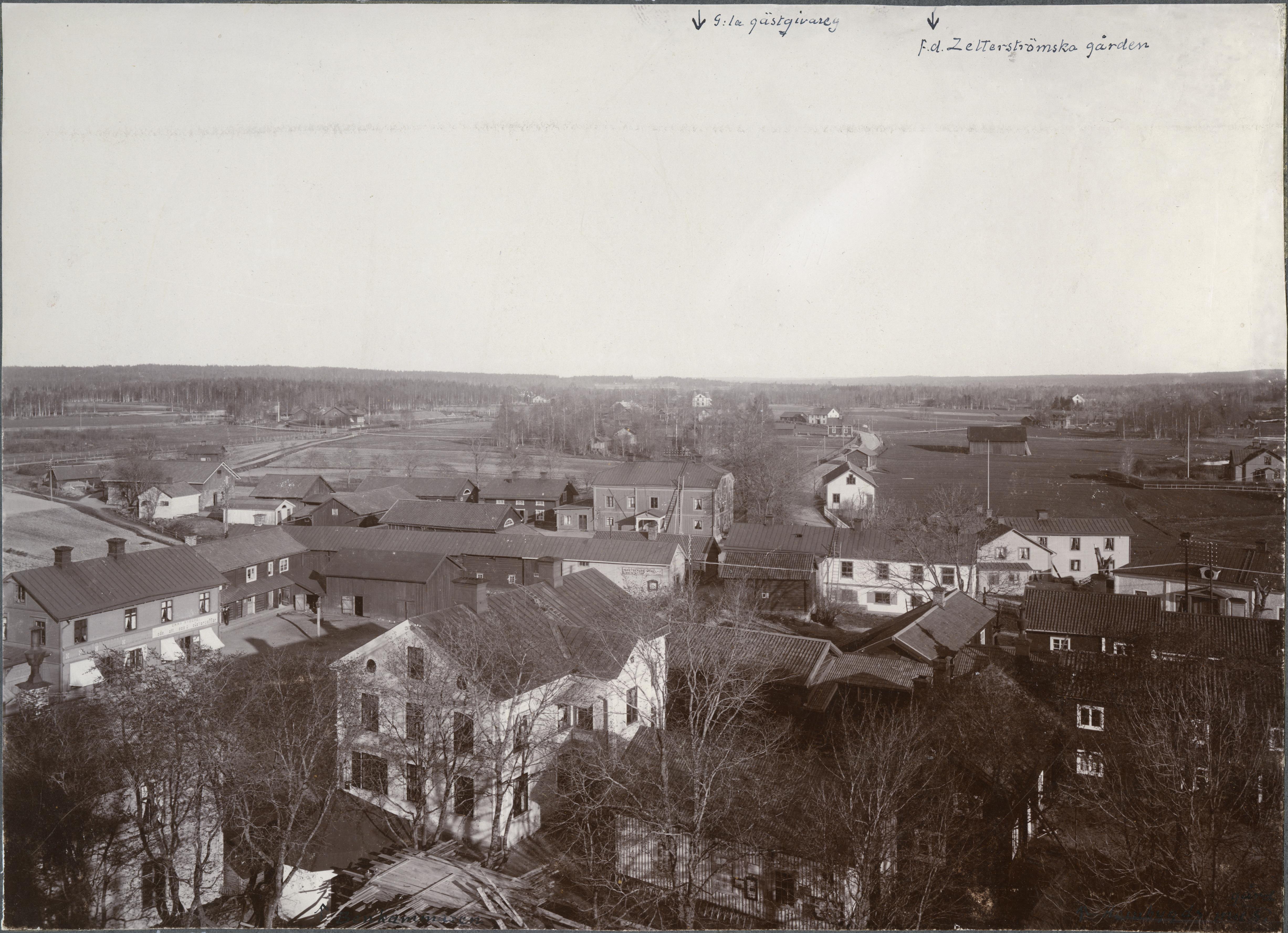 Vy över Norberg från kyrktornet. Fotografiet är taget omkring 1900.
