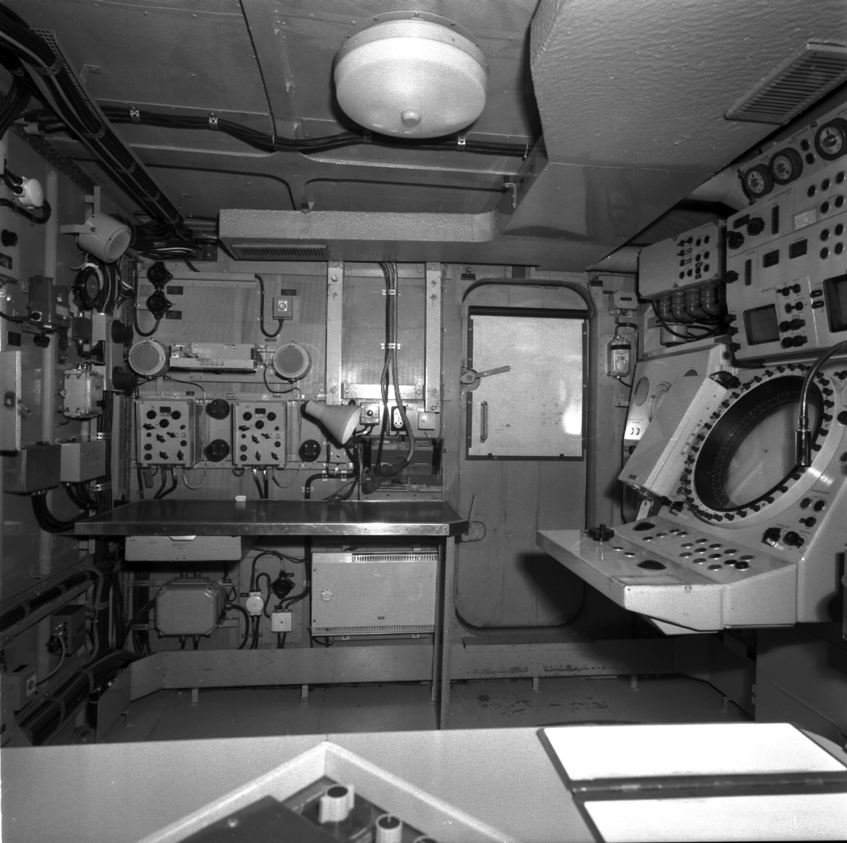 Interiörer av torpedbåtarna Piteå och Västerås.\\Styrmaskin, SLC, maskinrum och bryggan.