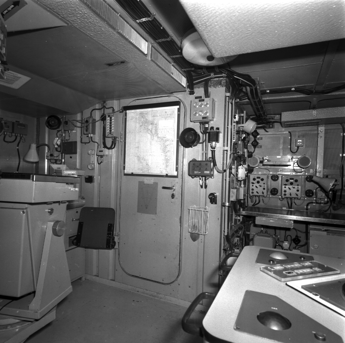 Interiörer av torpedbåtarna Piteå och Västerås.\\Styrmaskin, SLC, maskinrum och bryggan.