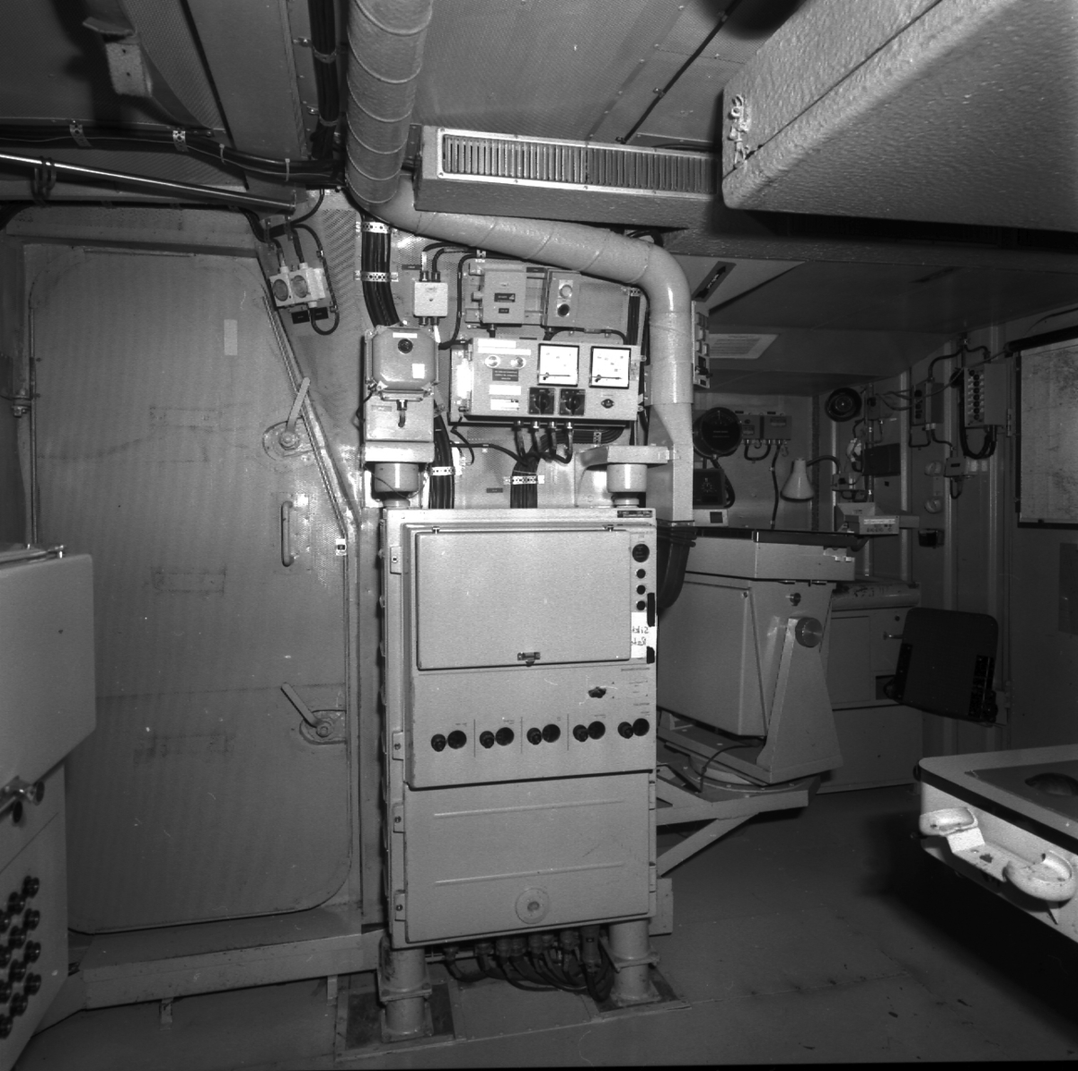 Titel: Piteå och Västerås Interiörer av torpedbåtarna Piteå och Västerås.\\Styrmaskin, SLC, maskinrum och bryggan.