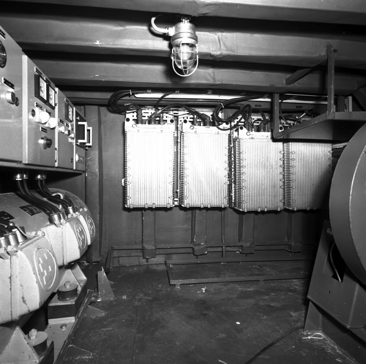 Interiörer av torpedbåtarna Piteå och Västerås.\\Styrmaskin, SLC, maskinrum och bryggan.