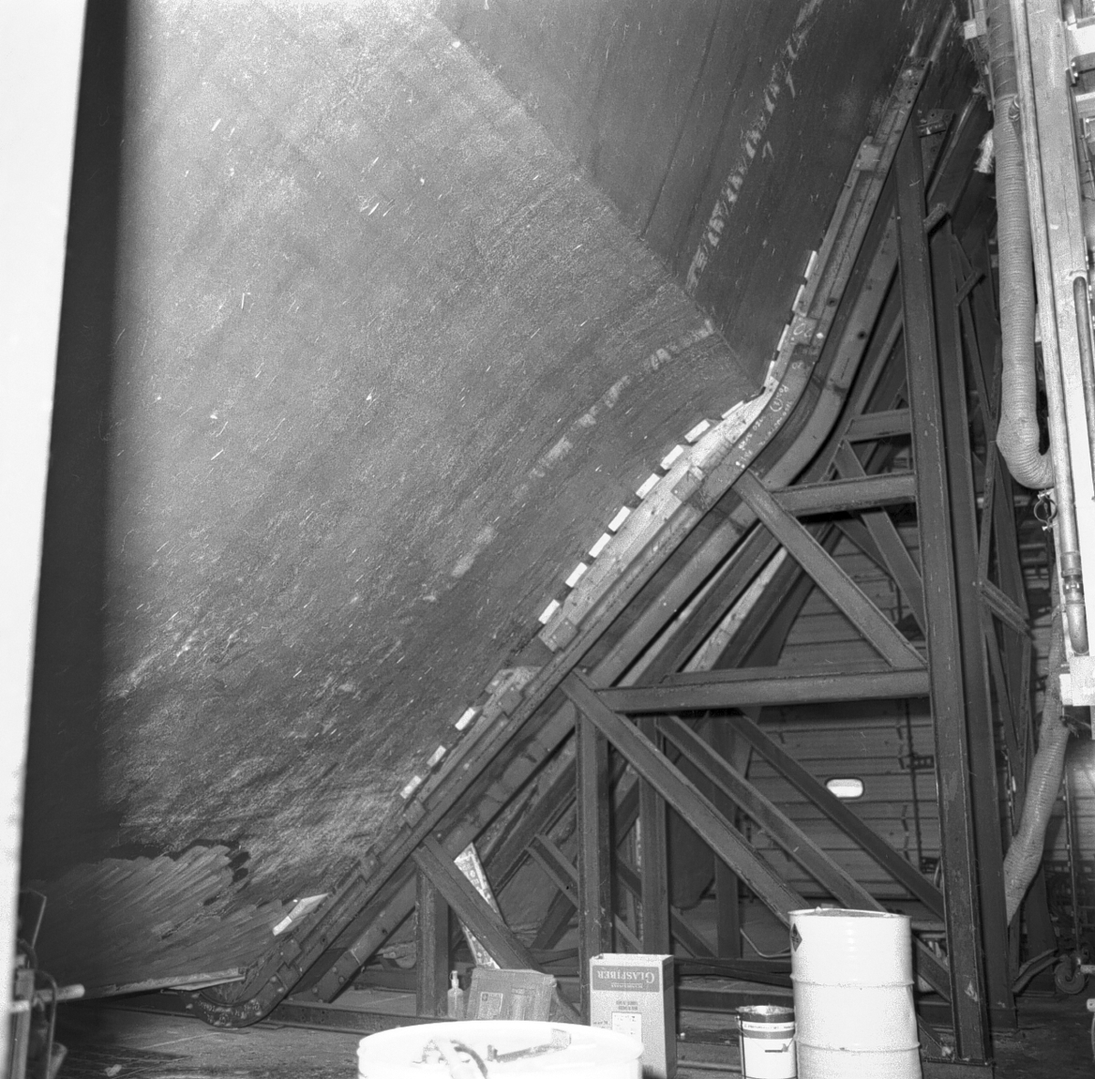 Arbetsställningar kring nybygge 419, minröjningsfartyget Vinga i plastverkstaden\\\\anm. neg ingår i en serie om 5 där bara det första\\V 104700 scannats/gp