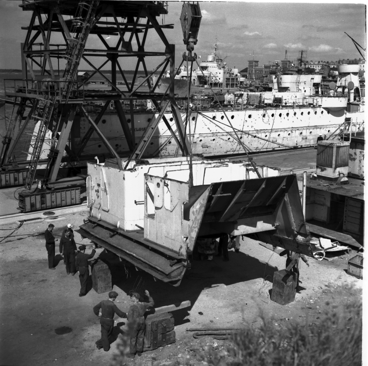 Titel: Fylgia Pansarskeppet Fylgia, lyft av däckshus