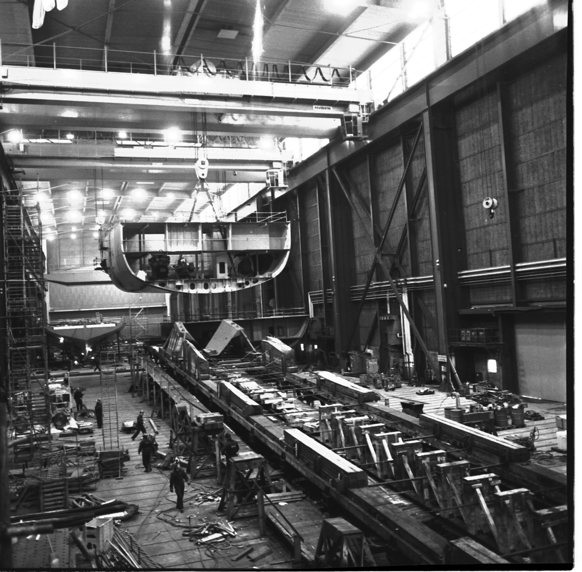 Titel: Carlskrona Sektioner till minfartyget Carlskrona lyfts på bädden