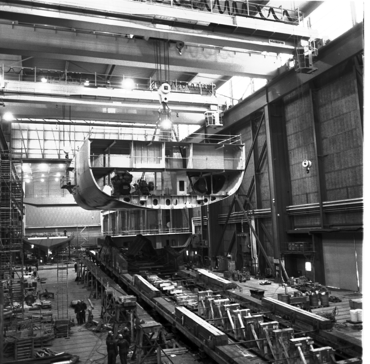 Titel: Carlskrona Sektioner till minfartyget Carlskrona lyfts på bädden