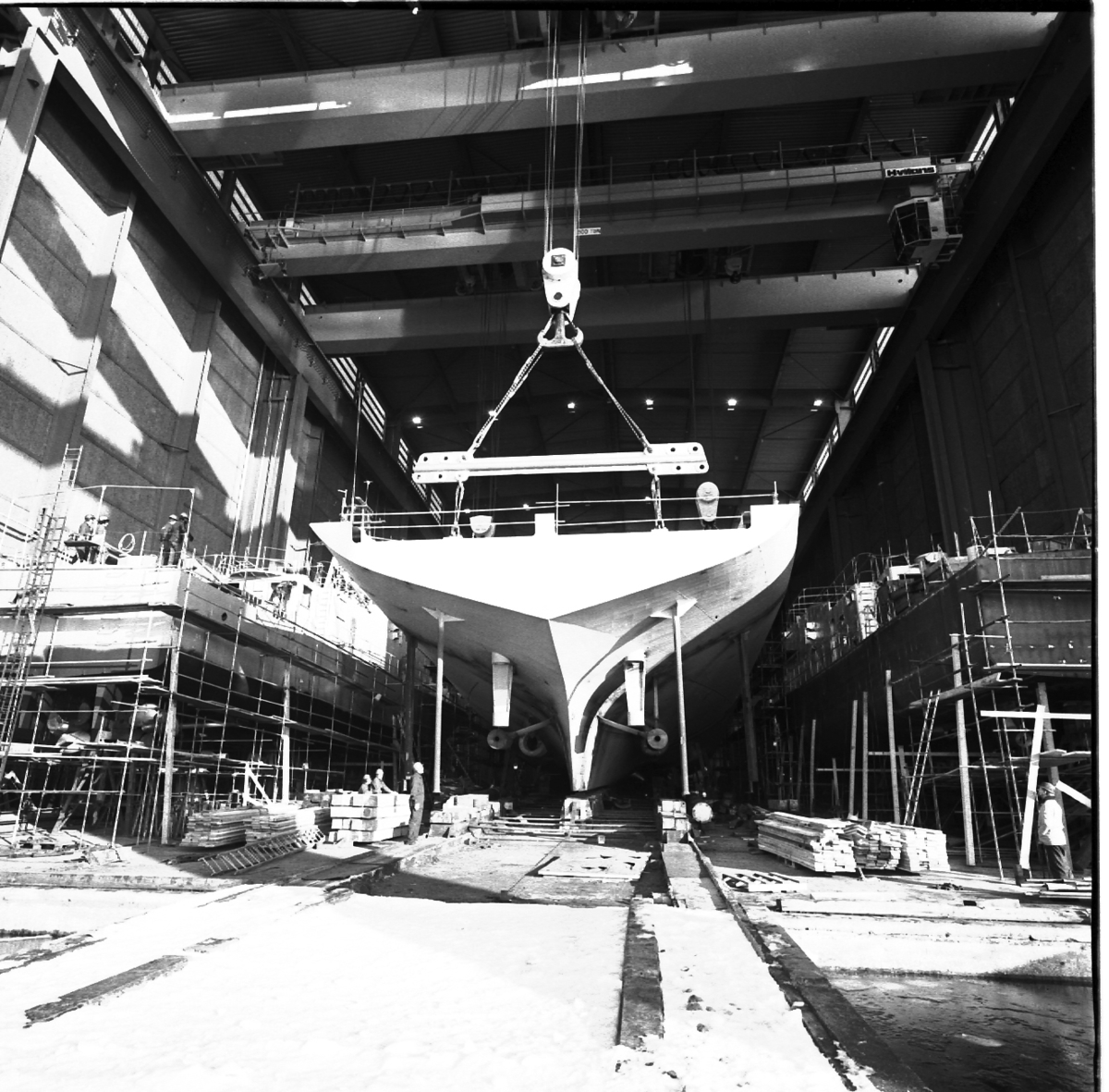 Titel: Carlskrona Sektioner till minfartyget Carlskrona lyfts på bädden