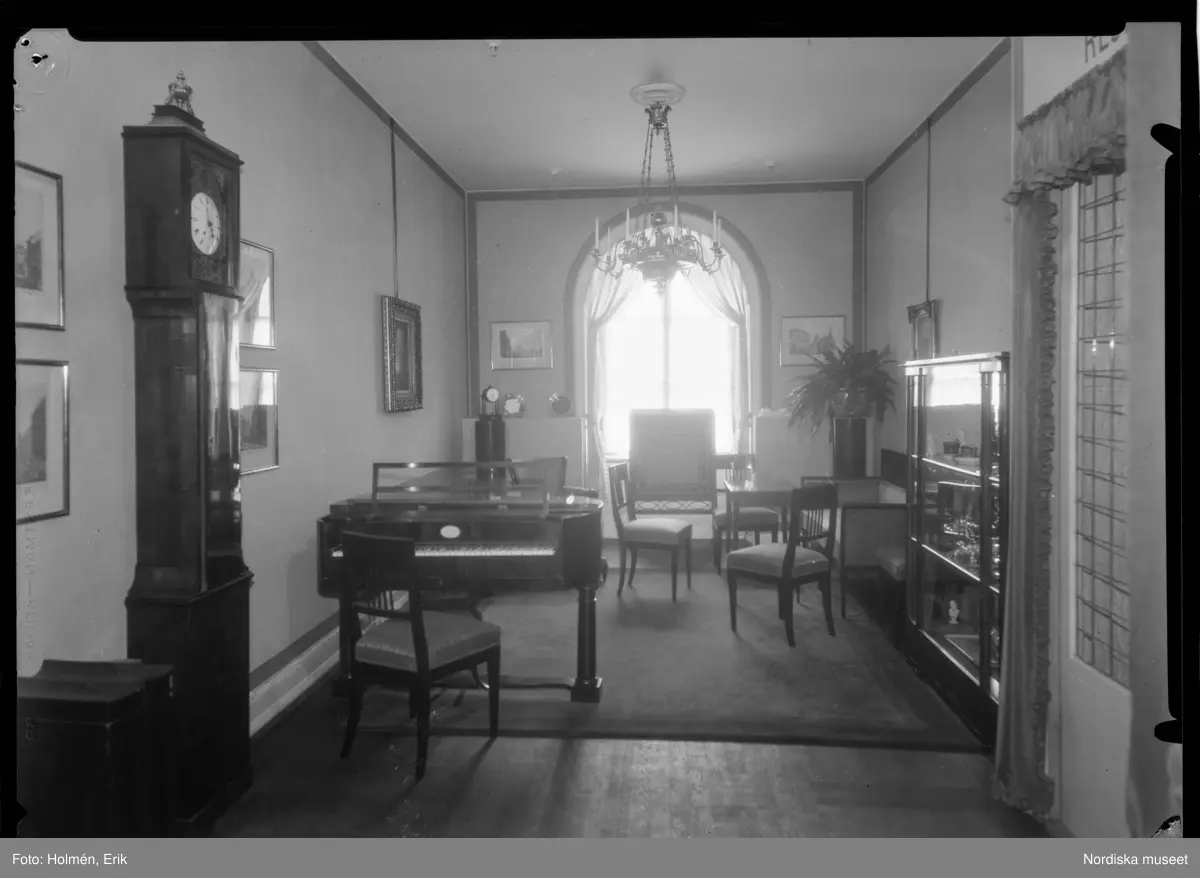 Fotografens förteckning/ anteckning: Interiör, rum med sittmöbler, bord och piano/flygel