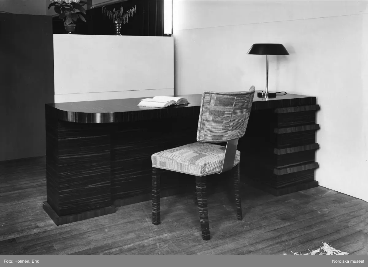 Skrivbord med tillhörande stol och lampa, Axel Einar Hjorth, Nordiska kompaniet.