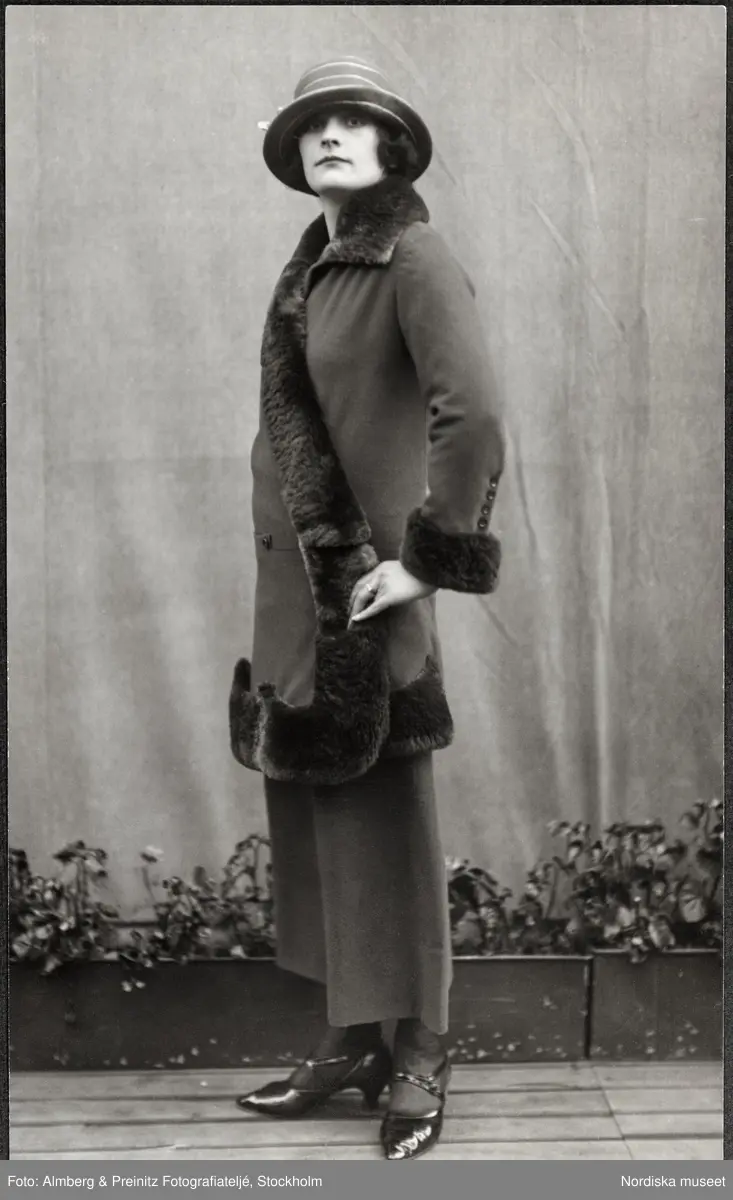 Greta Garbo iförd plagg från Renée som mannekäng för NK:s Franska damskrädderi hösten 1923.