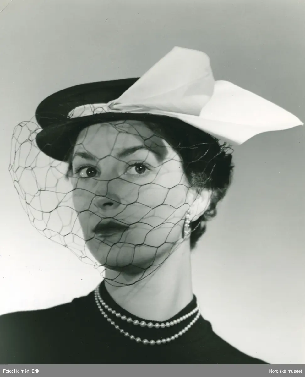 Porträtt av kvinna med blå hatt, flor och stärkt rosett, av Rose Valois.
