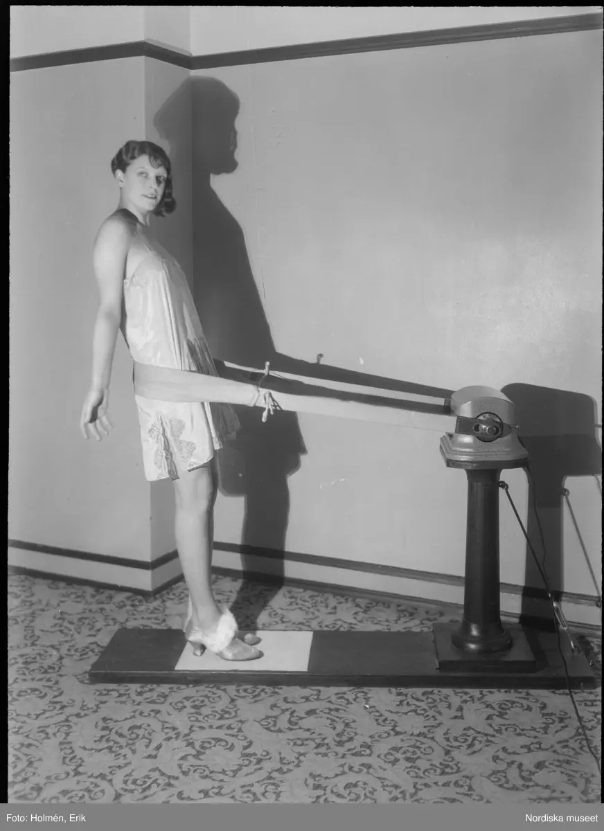 Titel: Fotografens förteckning/ anteckning: Kvinna i motionsmaskin