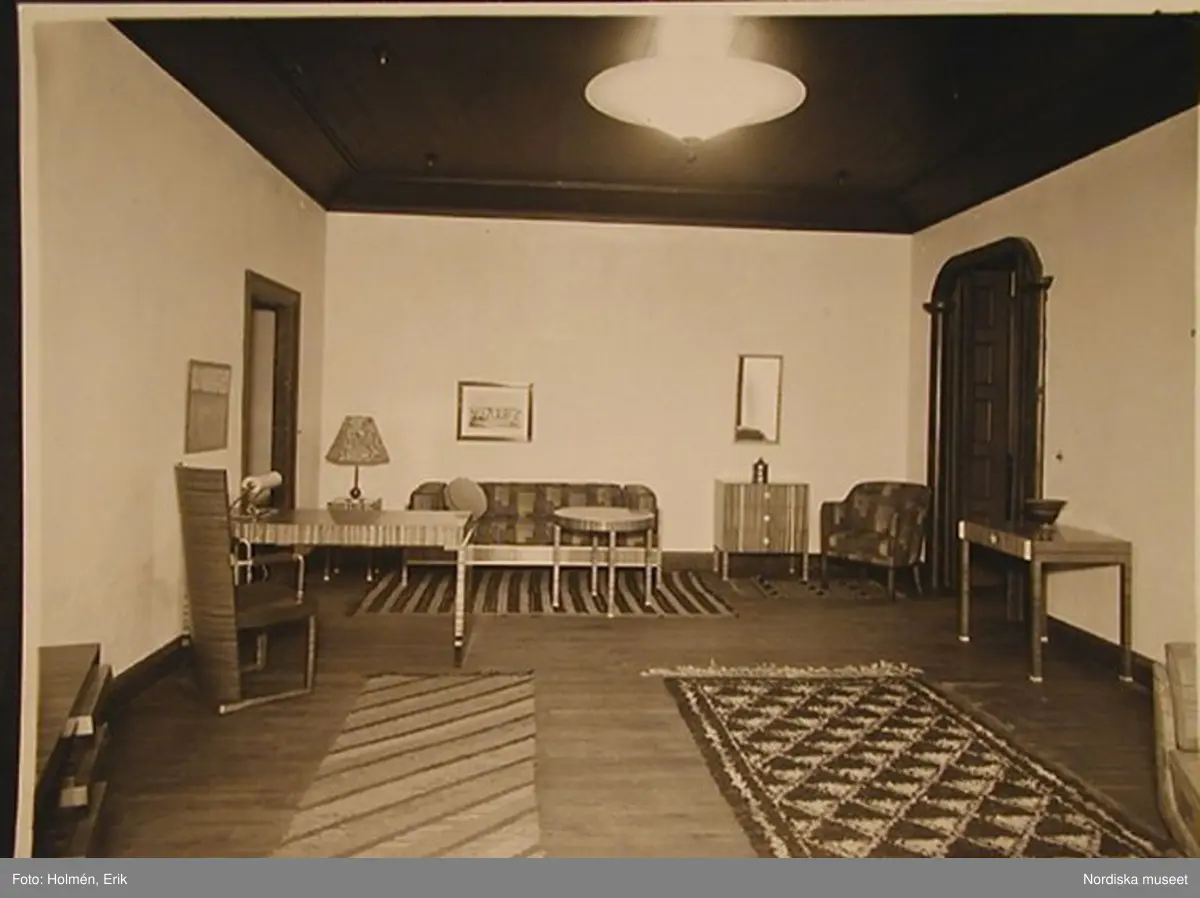 Möbelutställning på Nordiska Kompaniet, 1932. Möblemang modell "Salve" formgivet av Axel Einar Hjort.