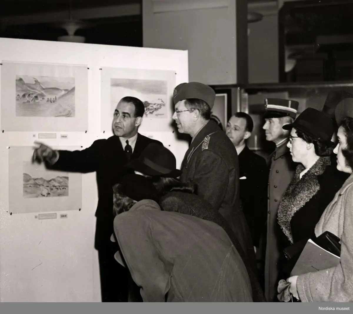 Kronprinsen Gustav VI Adolf besöker Nils Nilsson Skum utställning. Nordiska Kompaniet.