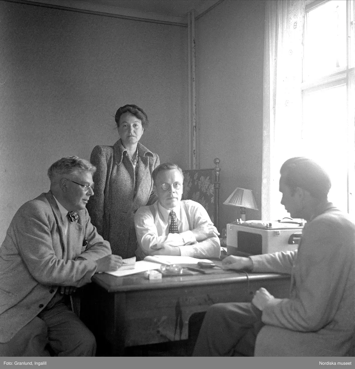 John Granlund, folklivsforskare vid Nordiska museet, med kollegor och intervjuobjekt.