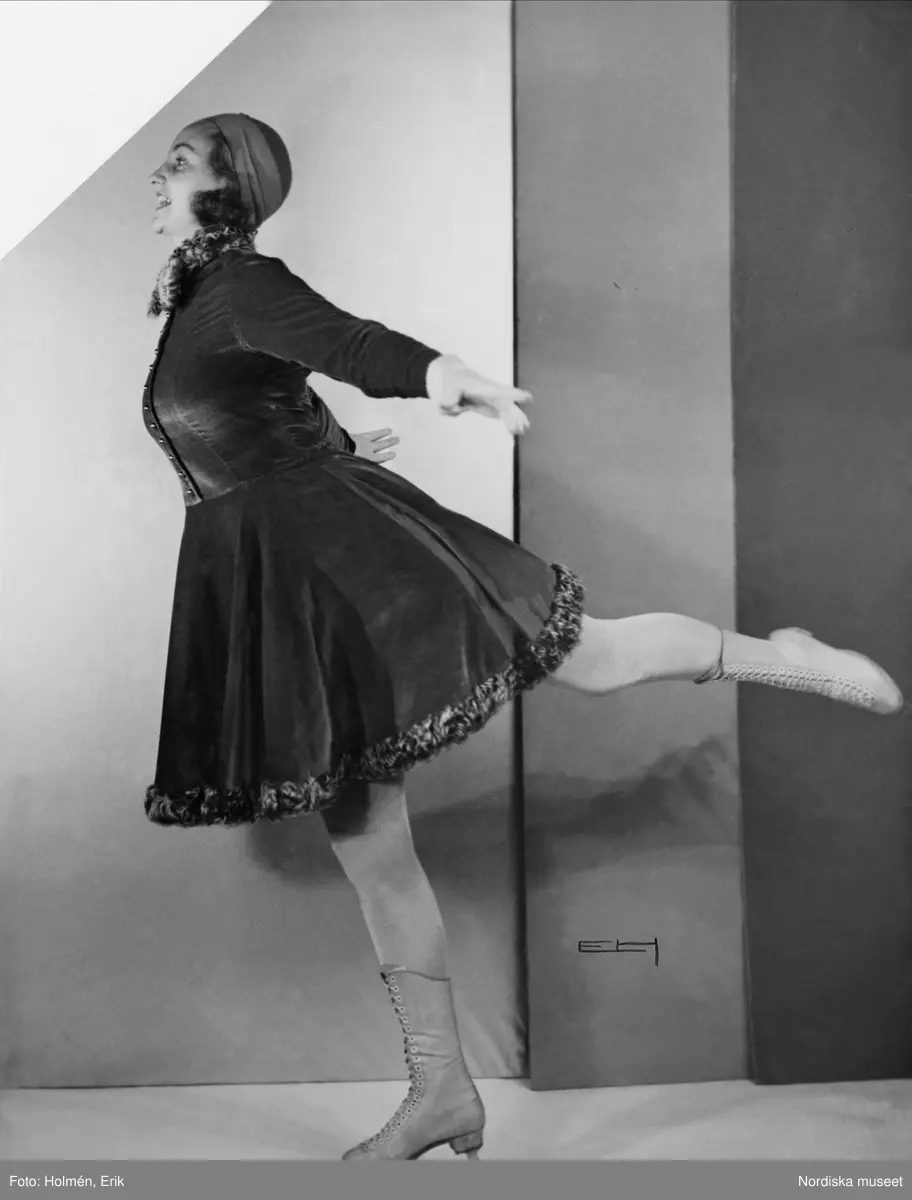 Ateljéfotografering på en dam med skridskor. Nordiska kompaniet.