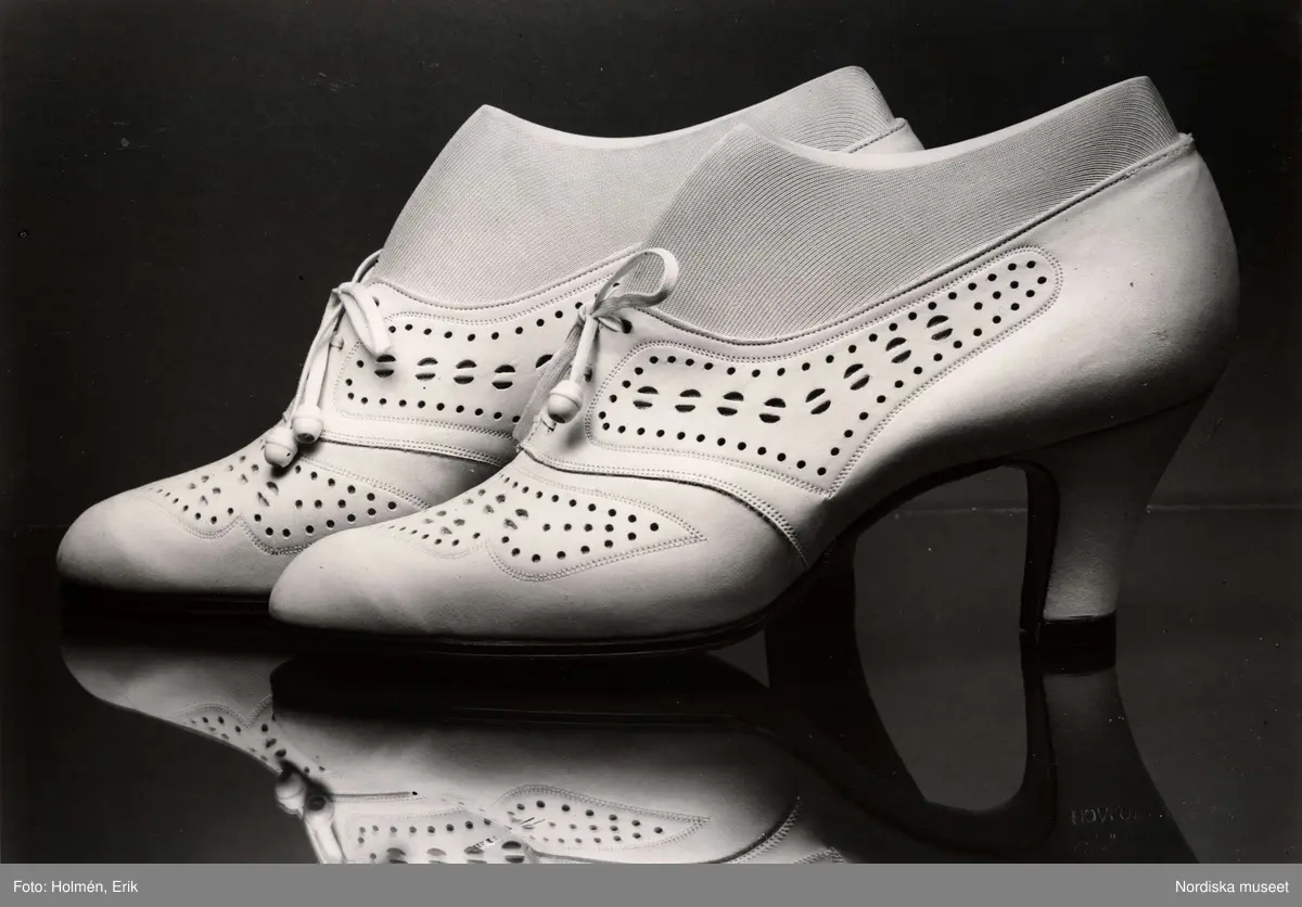 Nordiska Kompaniet, vårsko mars 1933. Vit mönstrad damsko med snörning, hög klack