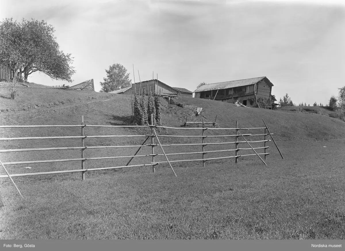 Värmland. Älvdals hd. N. Ny sn. Nedre Värnäs. Janngården. Hässja och humlegård. Foto G. Berg 1928. Etnologiska undersökningarna NORDISKA MUSEET 1001. Sp. 98 Pors och humle för brygd.
