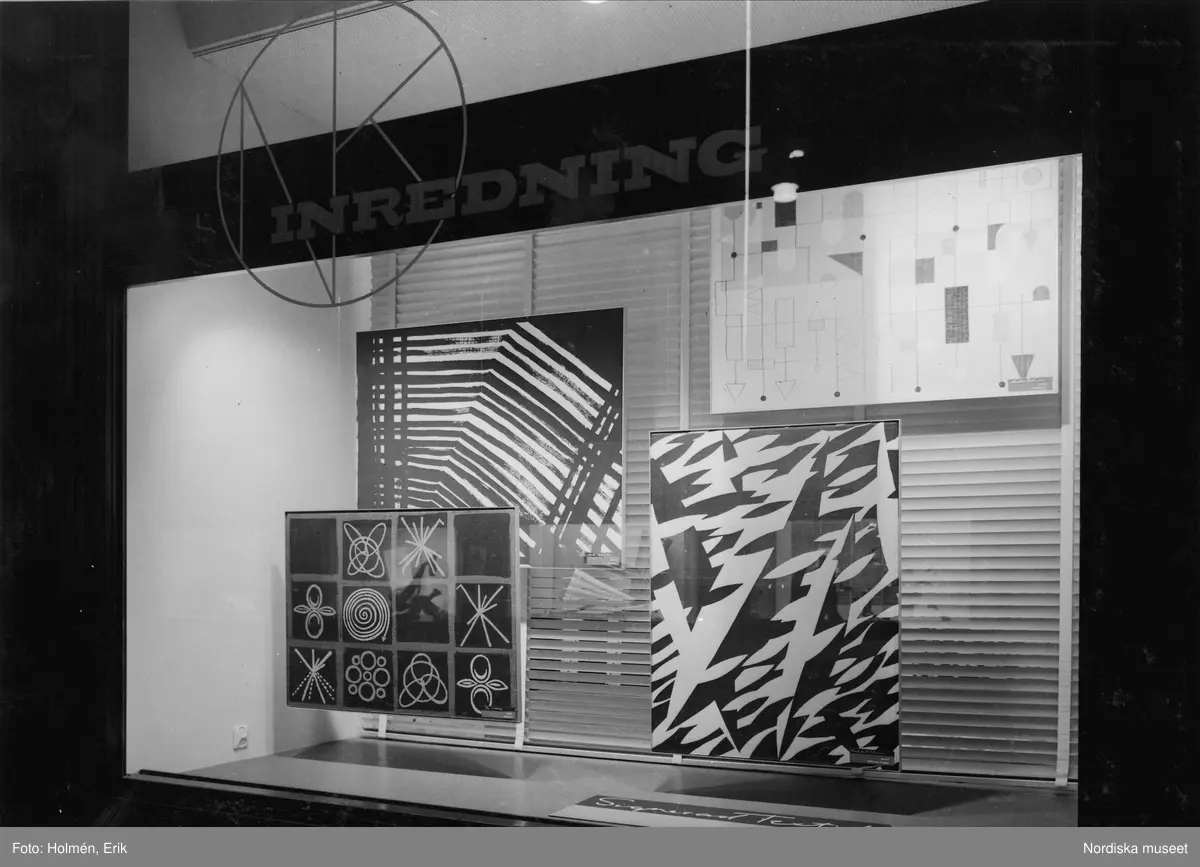Skyltning för utställningen "Signerad textil", Nordiska Kompaniet inredning.