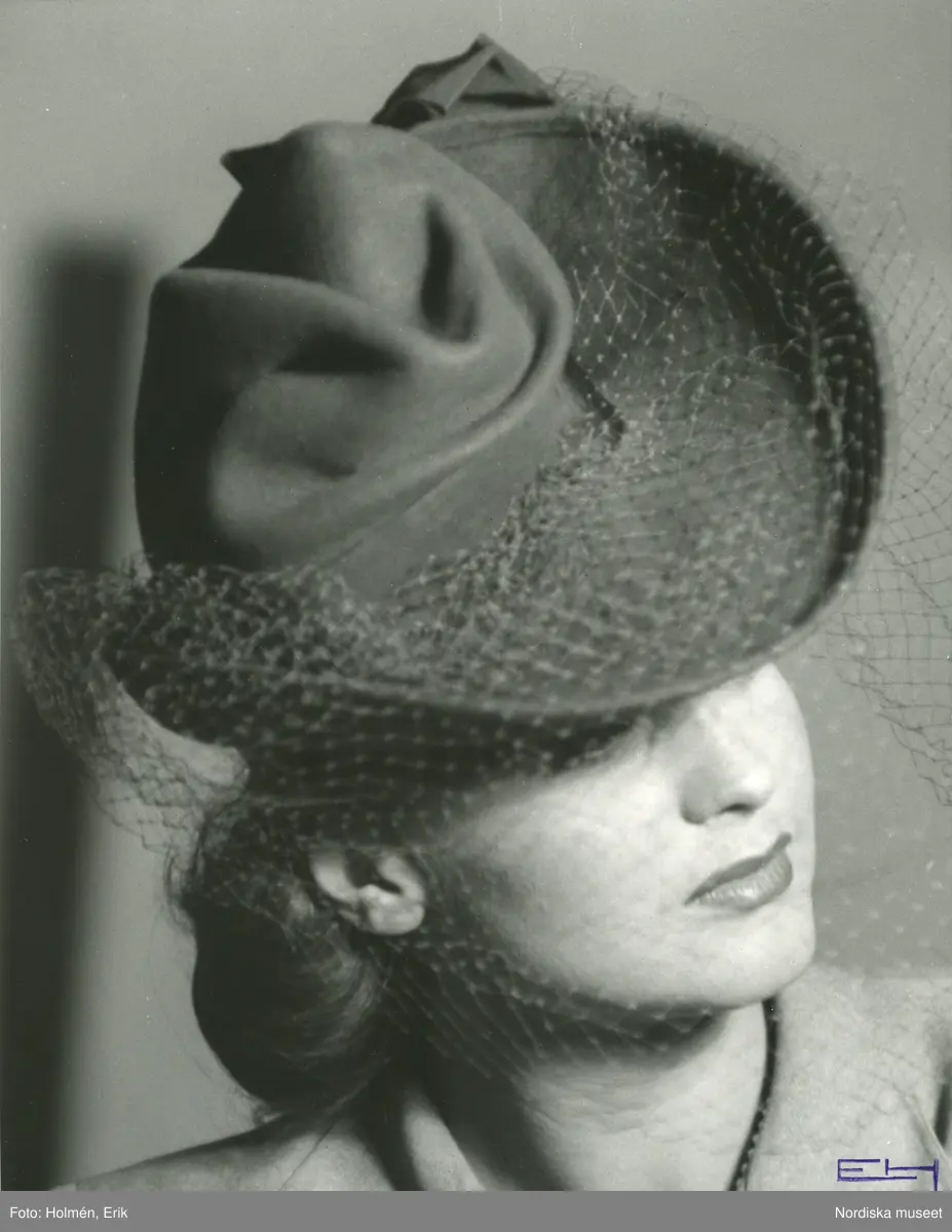 Porträtt av kvinna i hatt med pösig kulle och flor, Rose Valois.