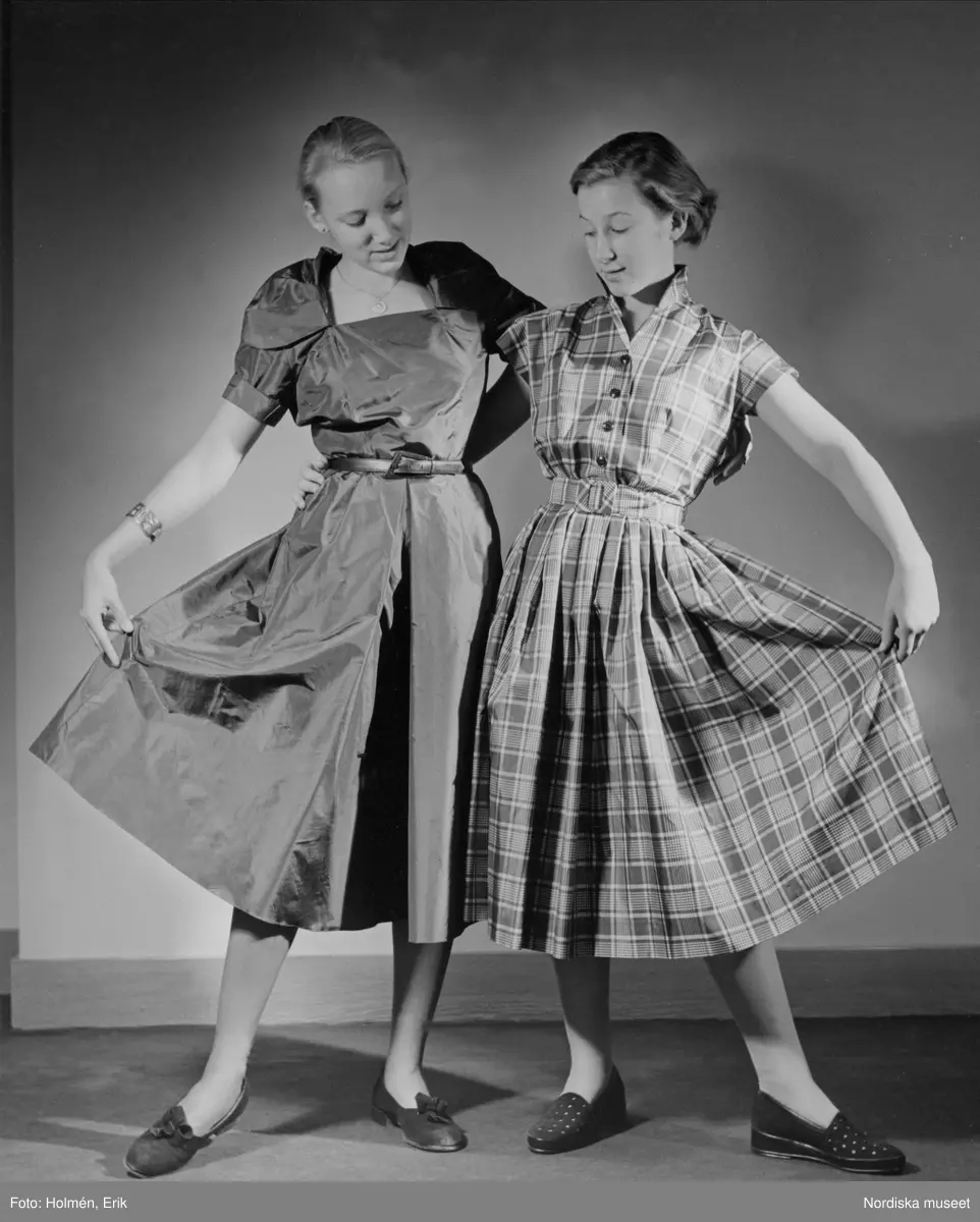 Kvinnliga modeller som visar klänningar. Nordiska Kompaniet.