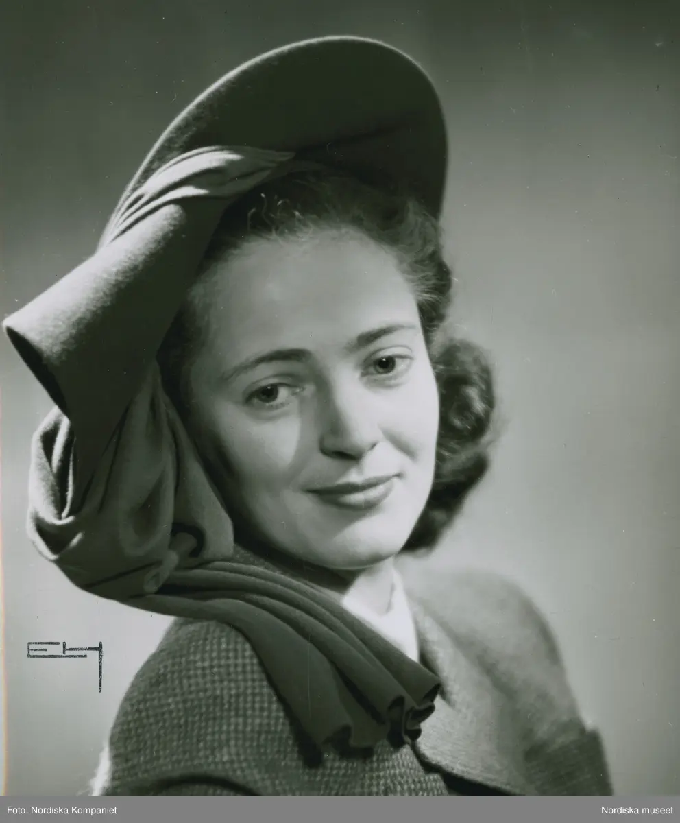 "Modell N.K. Grön filt med garnityr av brun jersey".
