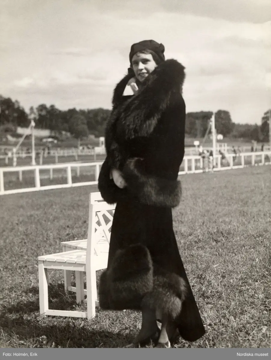 Svart kappa av velour transparant med rävbesats från Paton. Nordiska Kompaniet.
