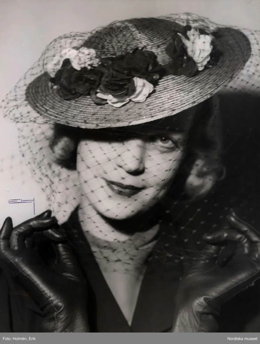 "Suzy. Ljusbrunt strå, blommor i rosa och mörkt virött, brunt flor". Damhatt, AB Nordiska Kompaniet, NK.