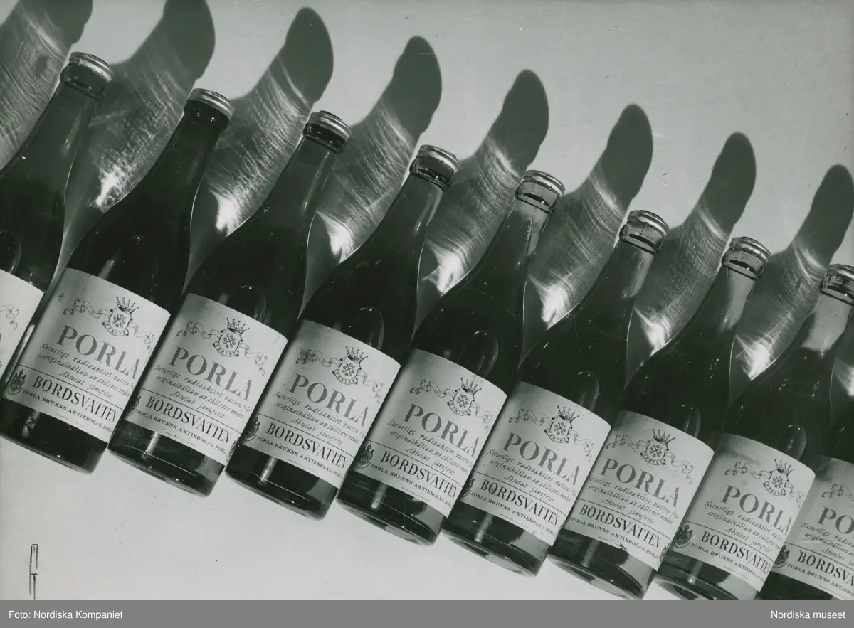Flaskor med Porla bordsvatten.