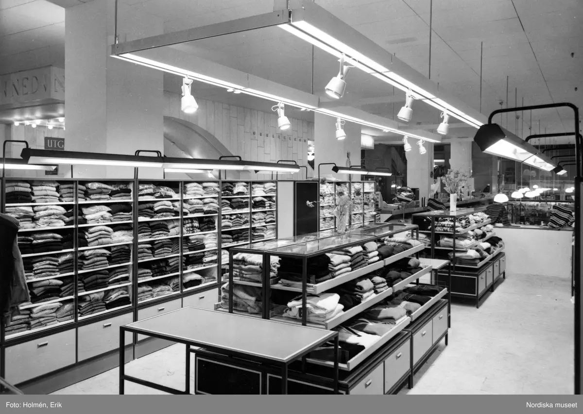 Interiör från Nordiska Kompaniet. Tröjor och koftor.