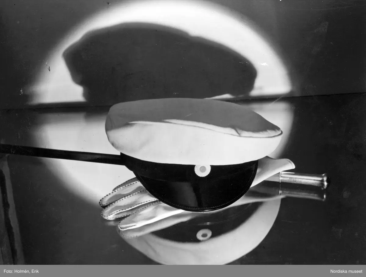 Studentmössa, käpp och handske.