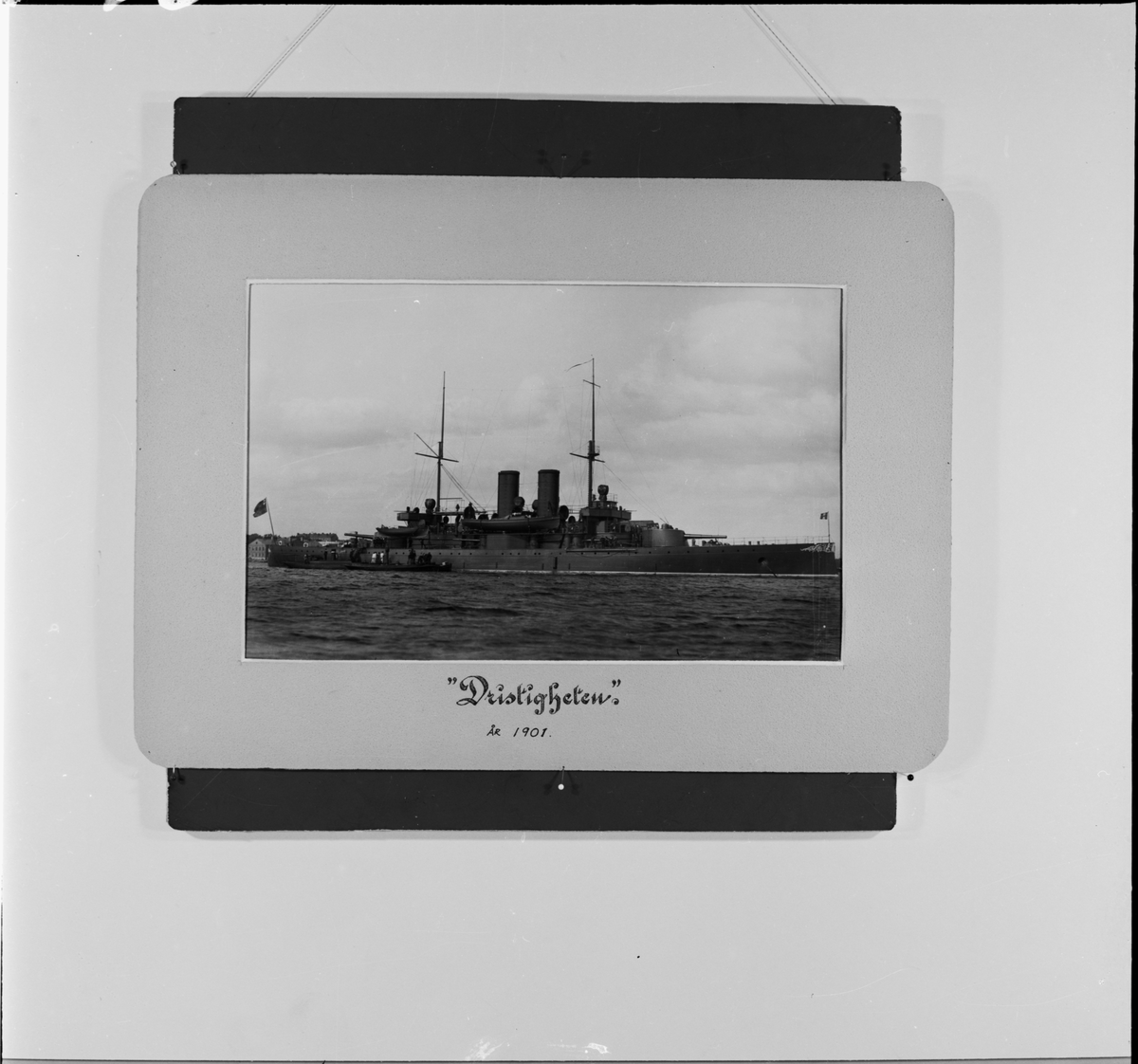 Reproduktion av en fotografi som visar pansarbåten Dristigheten år 1901.