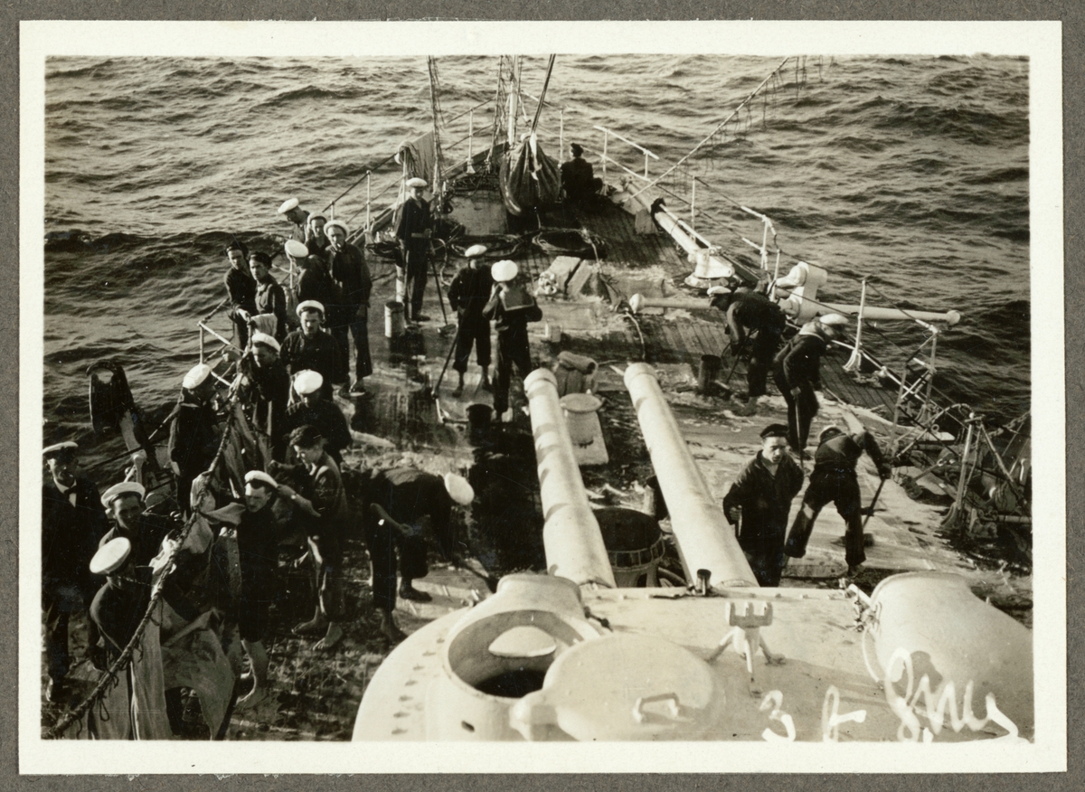 Bilden visar hur Fylgias tvätta sina hängkojor på däck ombord på Fylgia