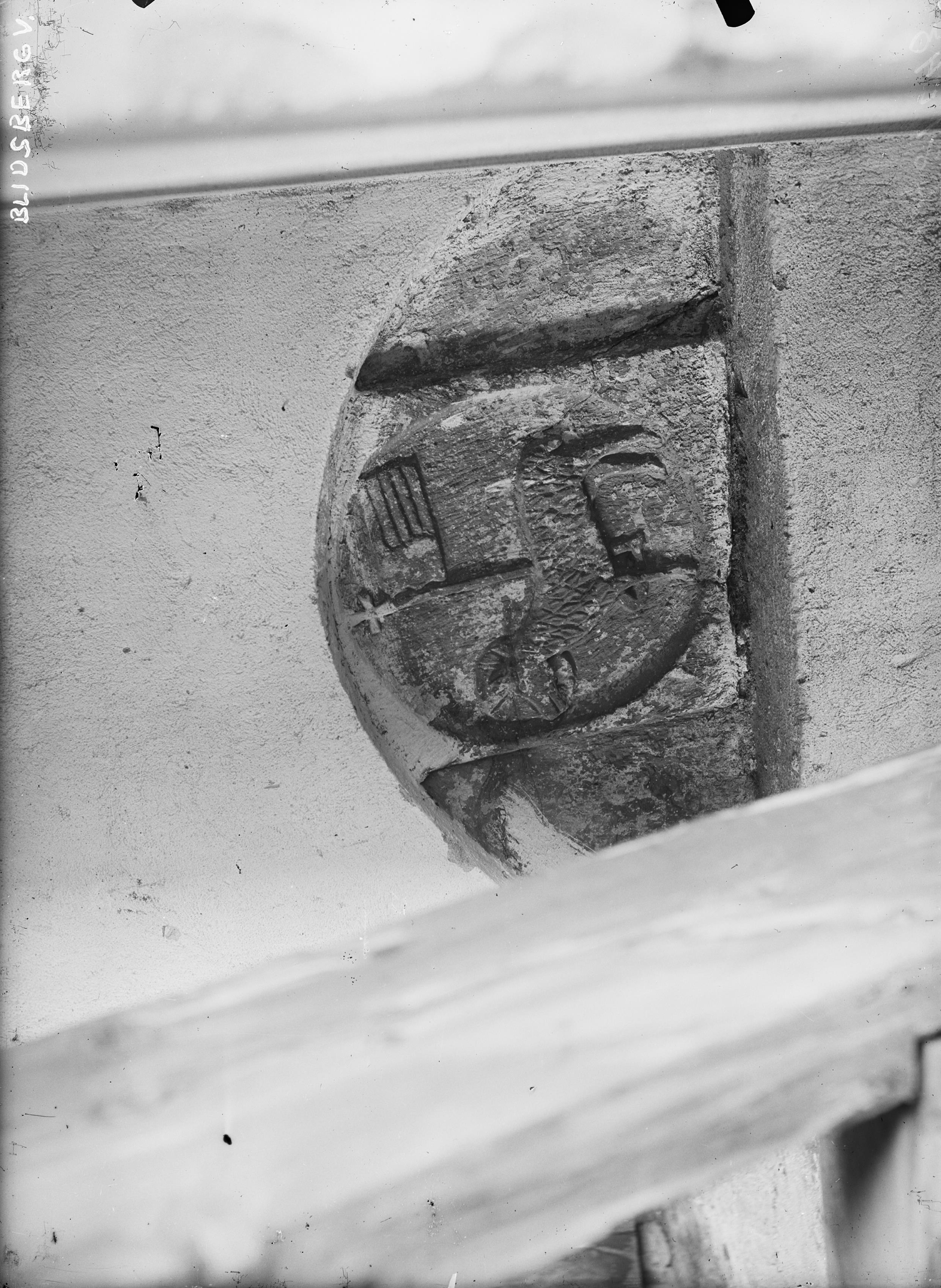 Dörröverstycke, tympanon med lamm med segerfana. Snabbinv.