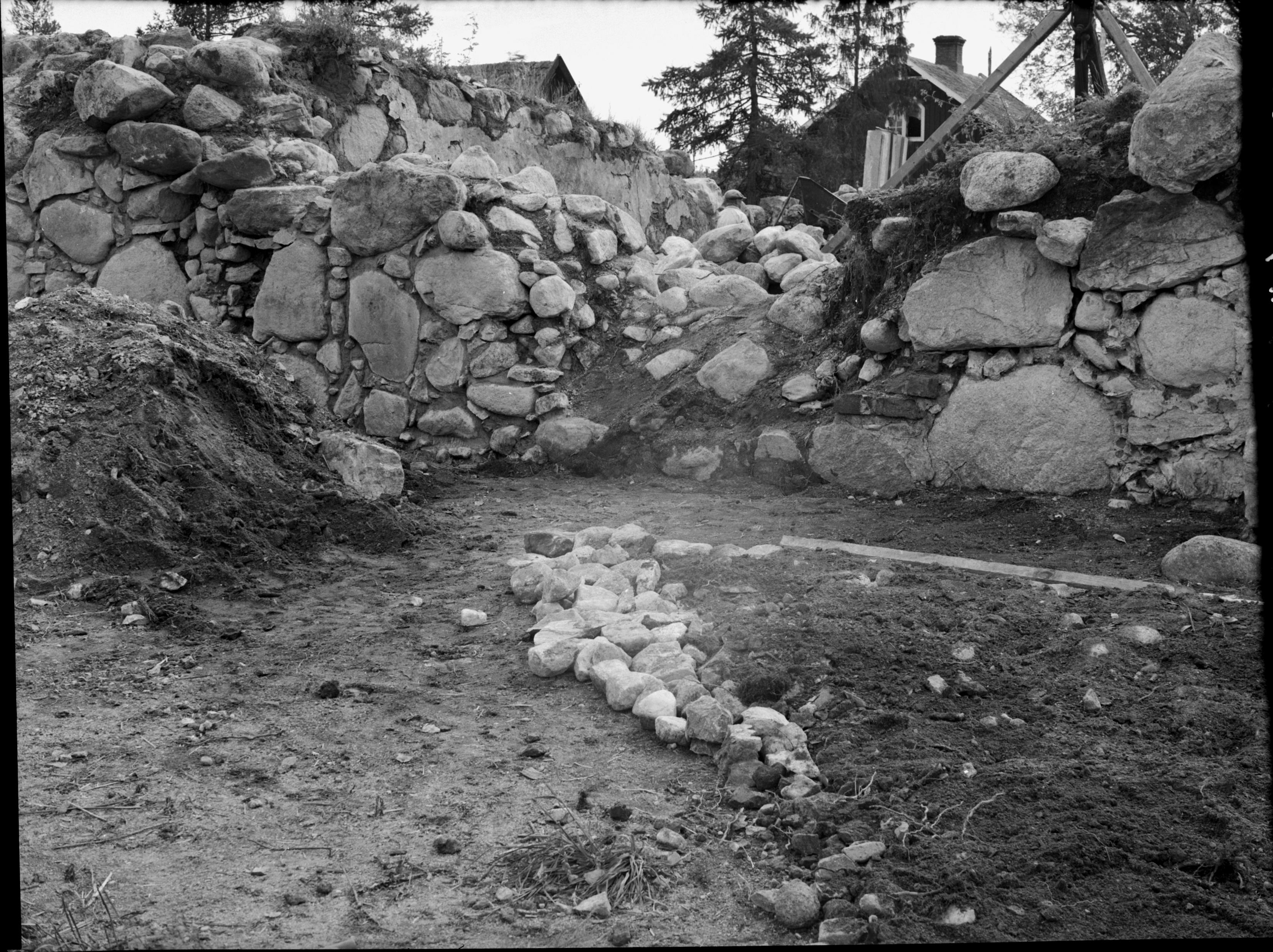 Långhuset, norra väggen, dörröppning, raserad.
