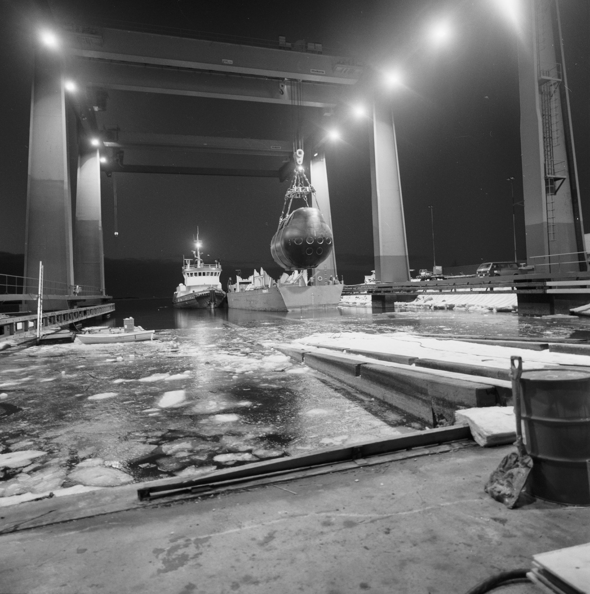 Titel: Lyft av förstäven till A19 ubåt för transport