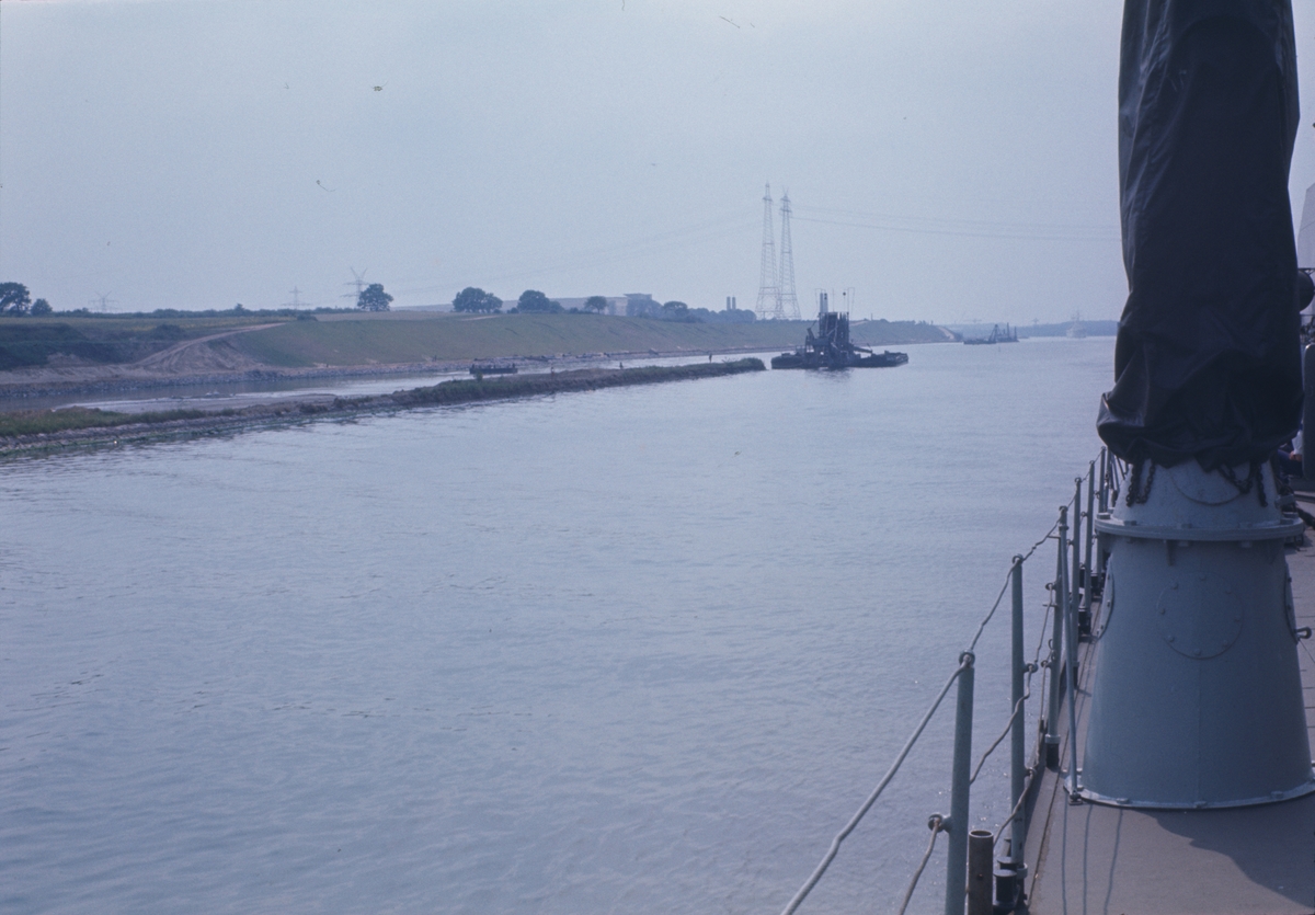 Bilden visar en mudderverk med namn "Friesland" under arbete i Kielkanalen.