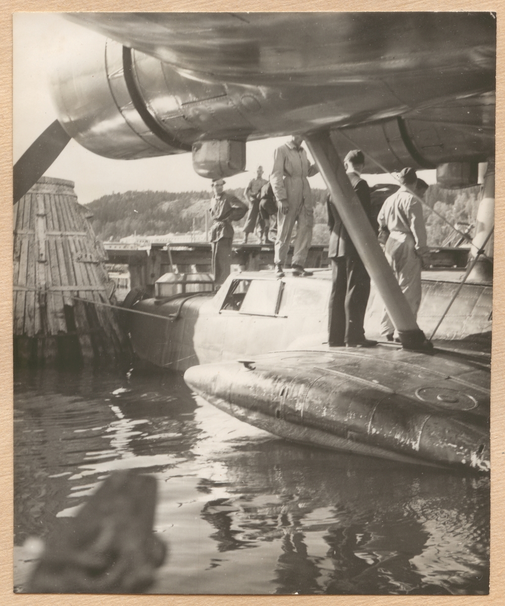 Bilden visar ett flertal personer på flygbåten Tp 24.