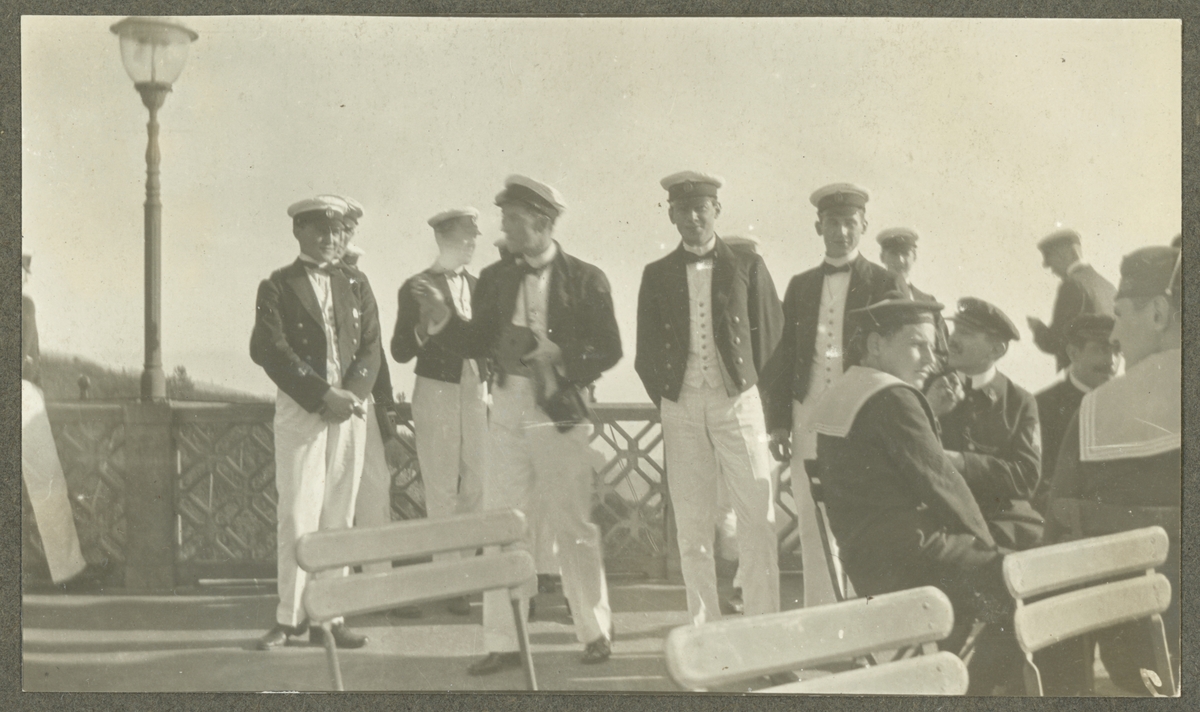Bilden visar en sammanskomst av Fylgias besättningsmän på Madeira.