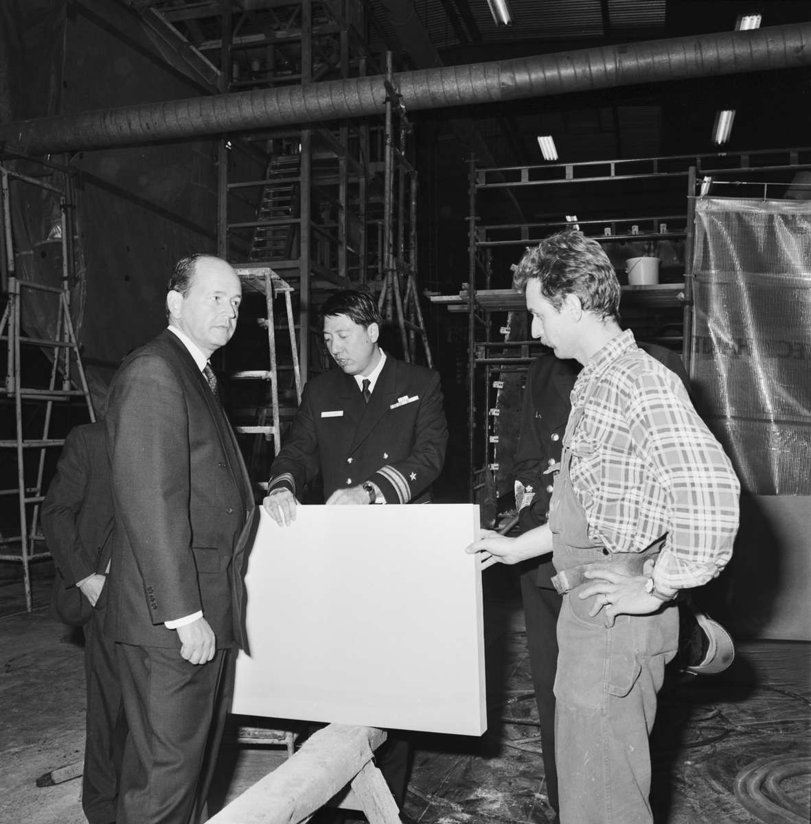 Varvschefen talar med den singaporianske marinchefen och visar honom Örlogsvarvet.
