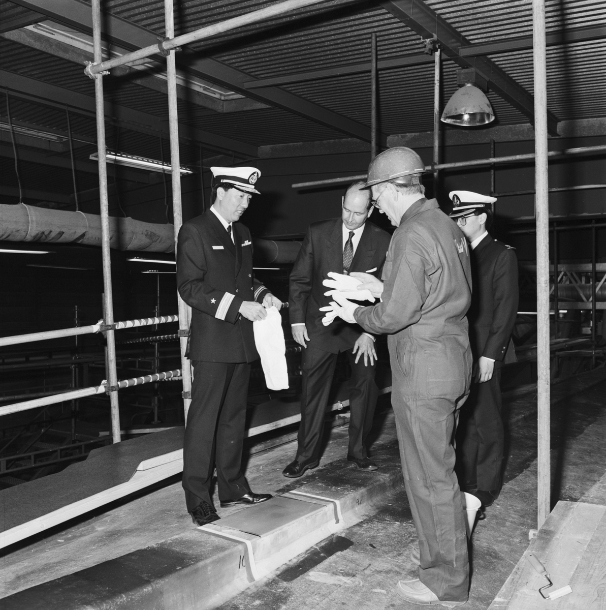 Varvschefen genomför en ceremonie med den singaporianske marinchefen.