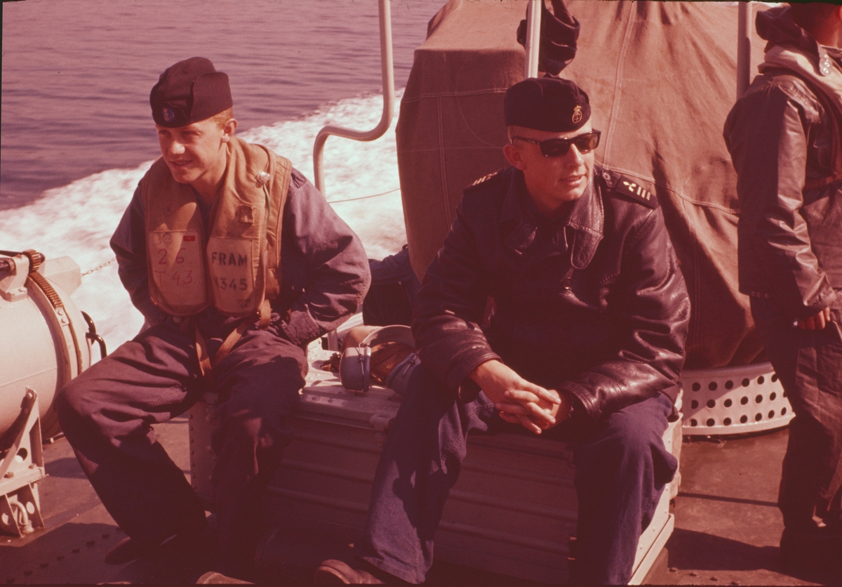 Bilden visar Åke Hultman och Rydberg som vilar i solsken ombord på T 43.