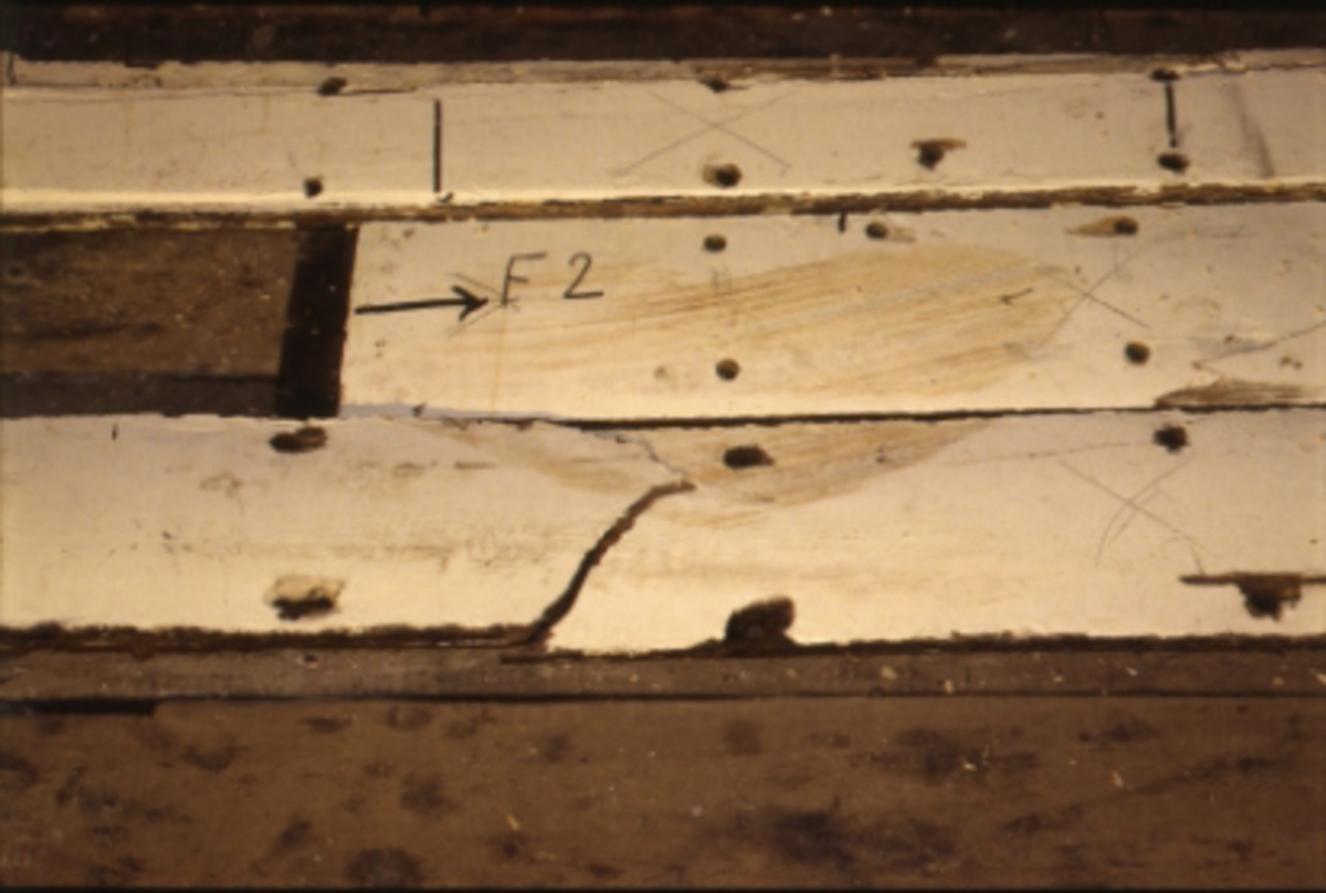 skador på bark, uppkomna vid angöring utanför slup o barkasskjulet på Stumholmen