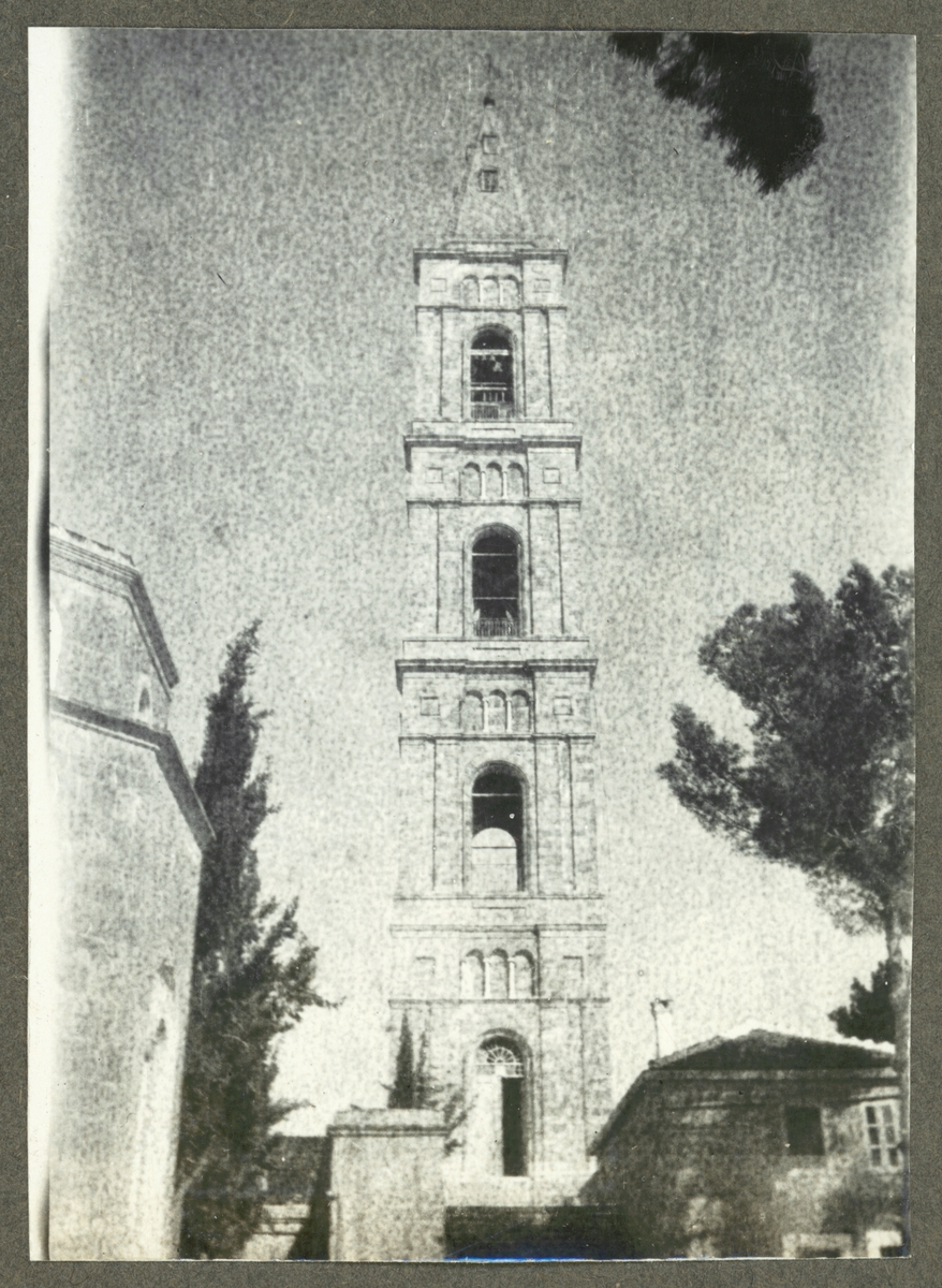 Bilden visar klockstapeln från klostern St. Eleon på olivberget i Jerusalem.