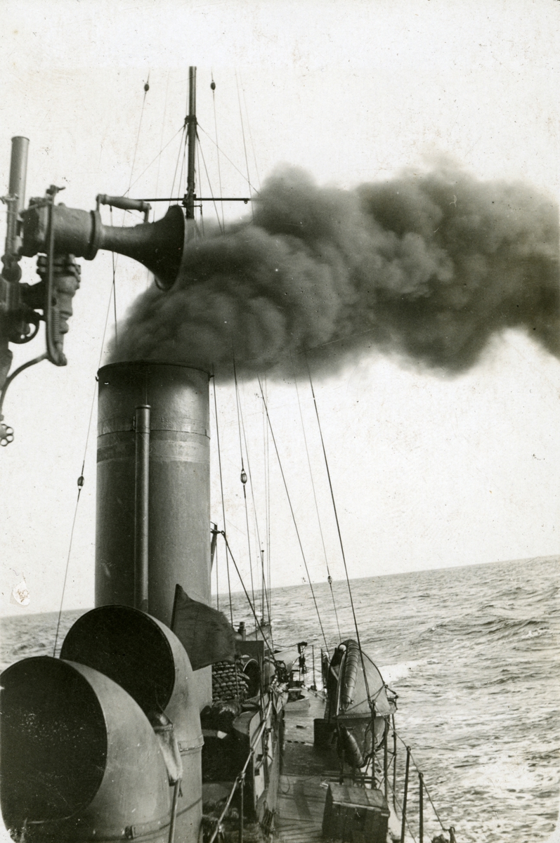 Någon form av fartyg till sjöss, sannolikt en torpedbåt.
