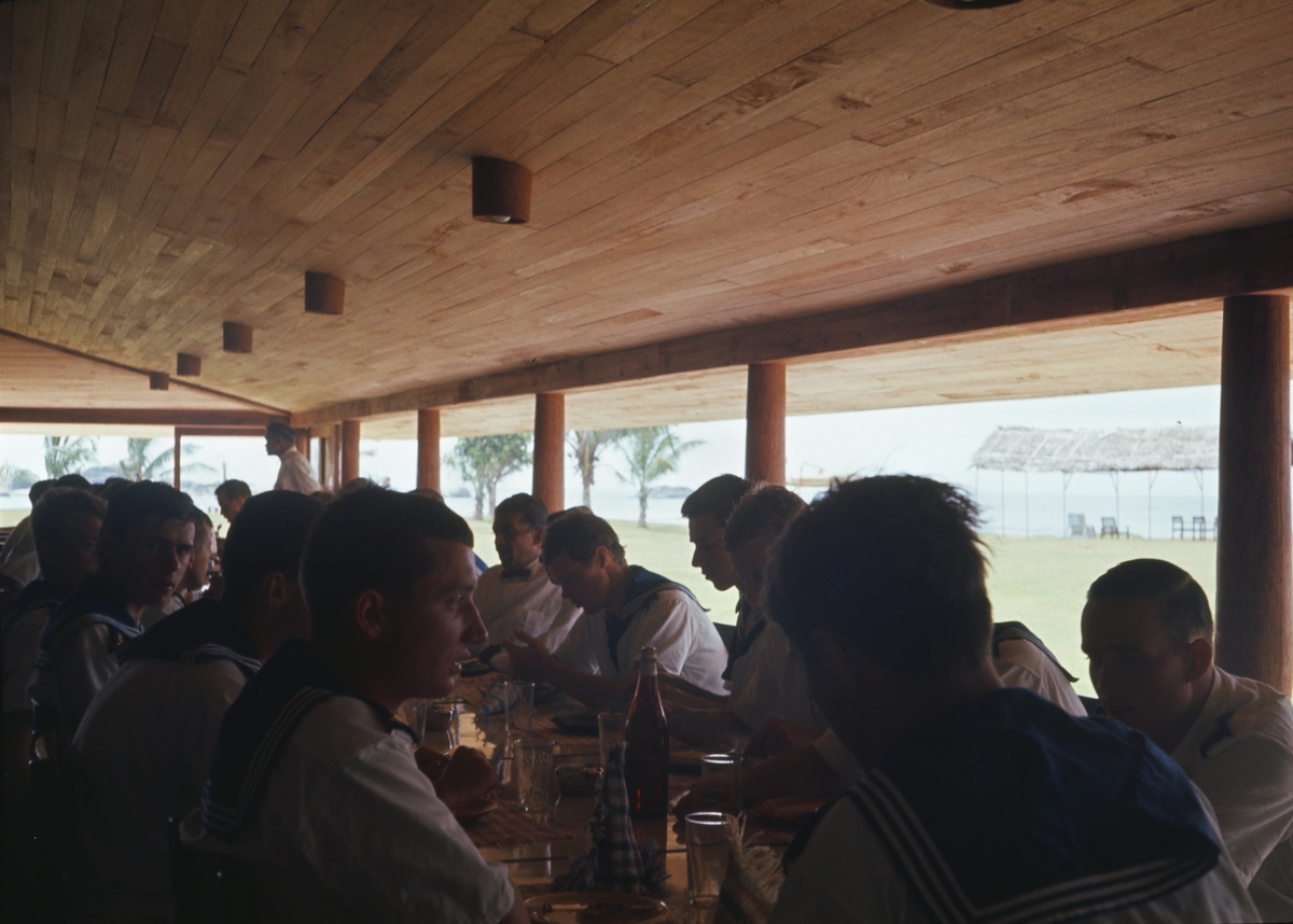 Älvsnabben besättningmän äter lunch i en hotell.