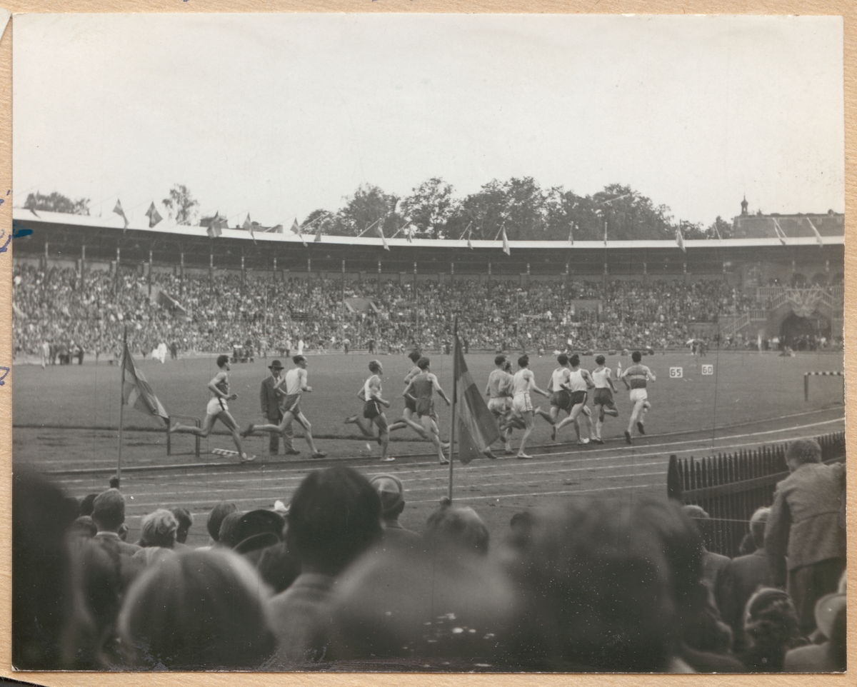 Bilden dokumenterar en löpning under en friidrottsevenemang.