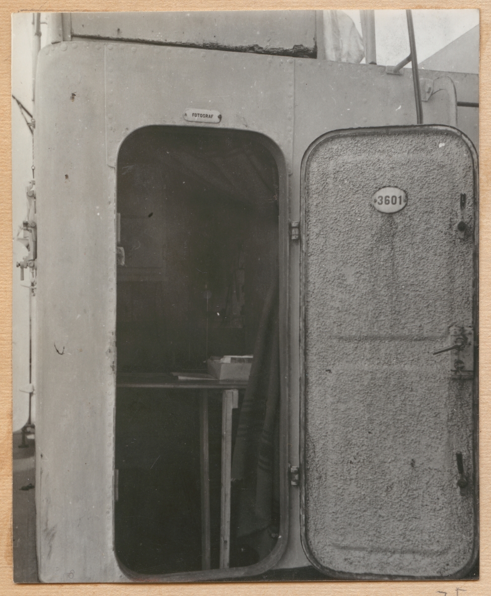 Här får man insyn i fotoateljén ombord på Fylgia genom den öppna dörren.